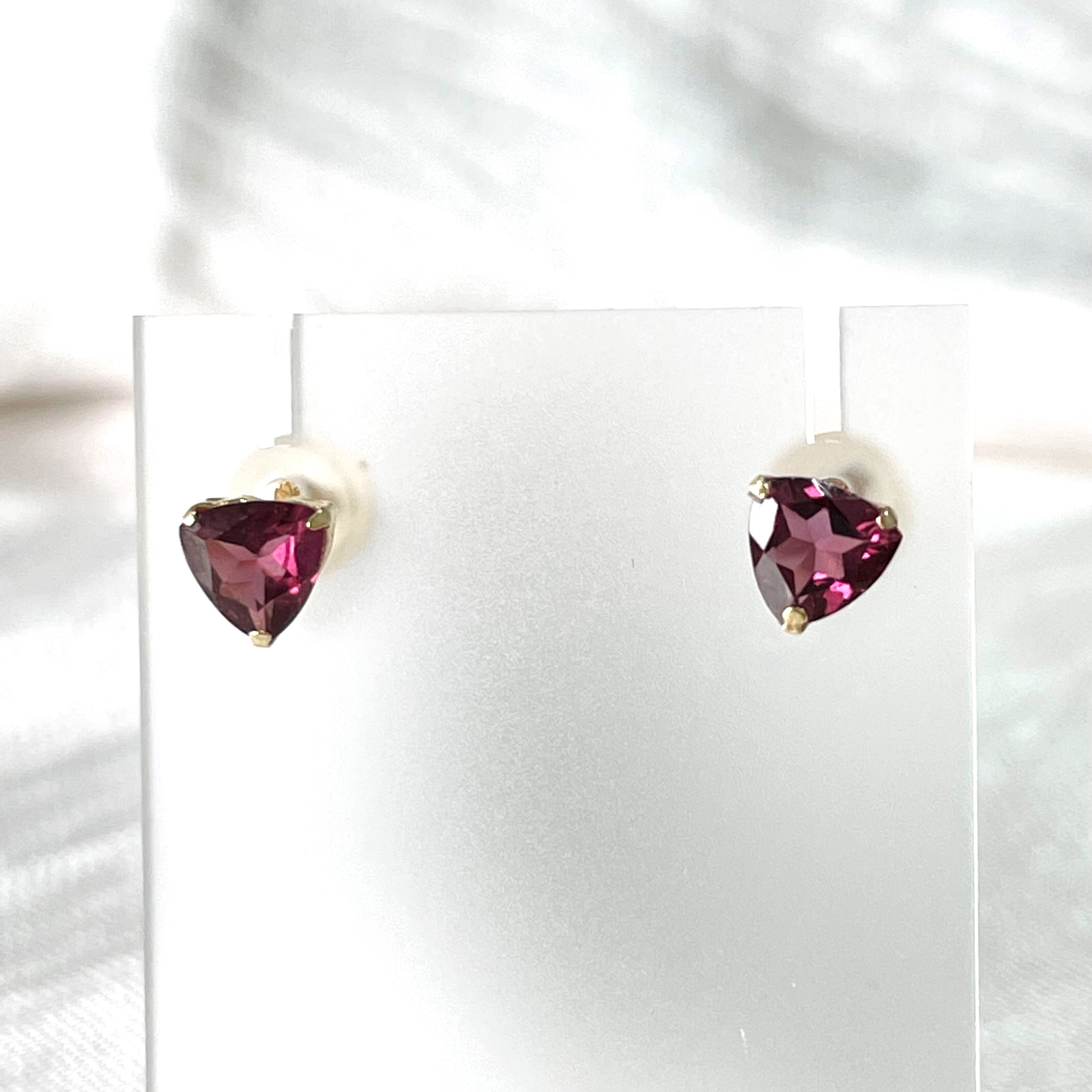 K18イエローゴールド ガーネット トリリアントカット 三角形 スタッド ピアス | Jewelry La pause