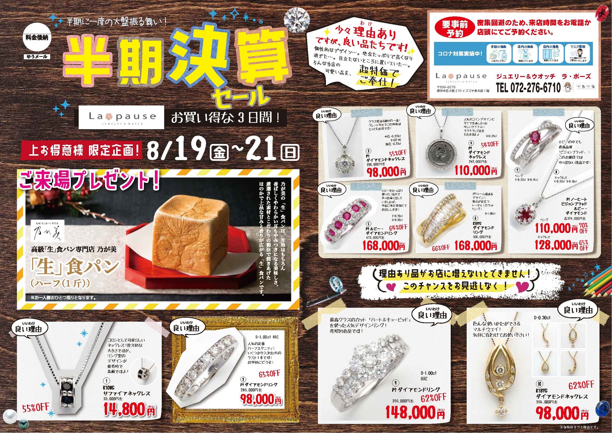 8月19日(金)~21日(日)まで、ラ・ポーズ店舗にて、半期決算セールを行います!