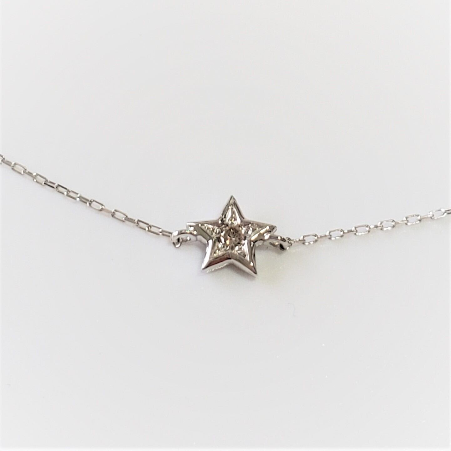 繊細なデザインを施したホワイトゴールドの星型の中央にダイヤモンドが一粒きらりと輝きます。
